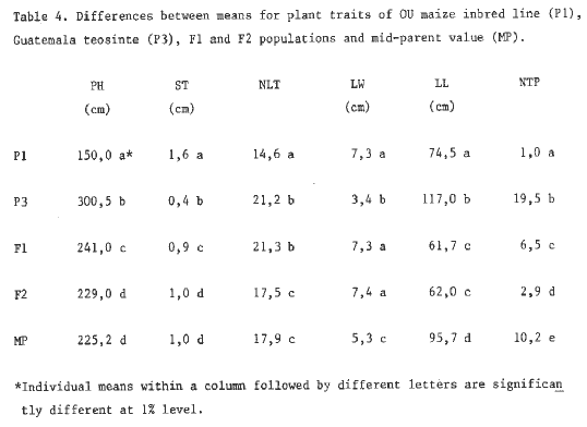4. Differences between means for plant traits of OU maize inbred