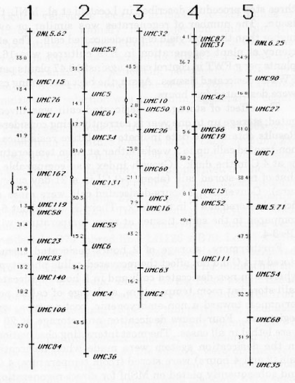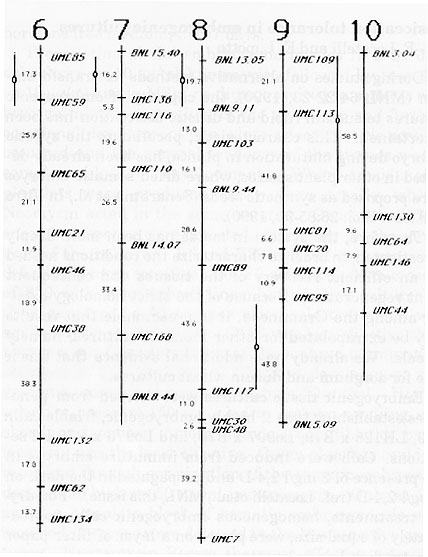 Figure 1. (1-5) (6-10) Linkage map of probes used for RFLP analysis of 41 maize inbred lines.