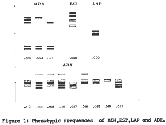 1. Phenotypic frequencies of MDH, EST, LAP, and ADH.