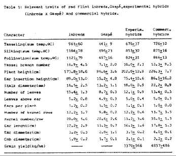 1. Relevant traits of red flint inbreds, Gaspé, experimental